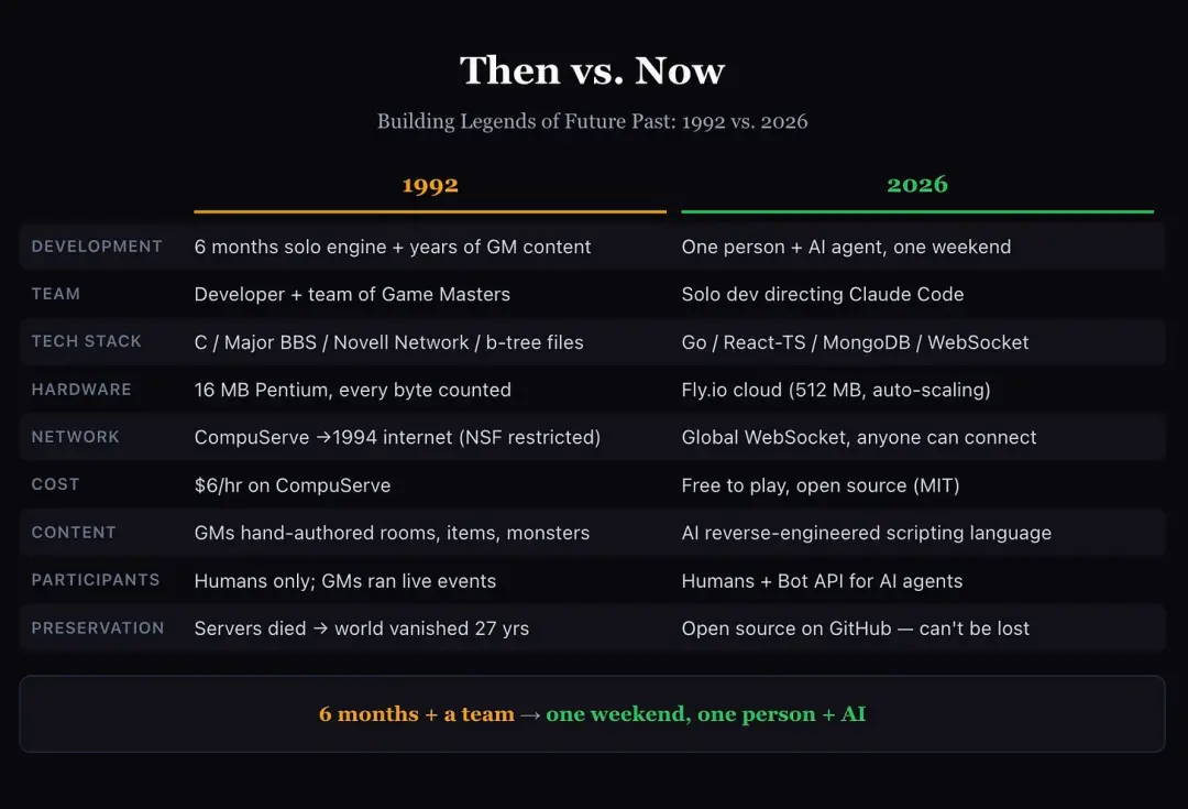 一个帖子在Reddit上火了!仅凭一点线索,Claude就复活了一个30年前的传奇游戏。目前评论已经盖到了一百多楼,网友的共识是:这篇帖子堪称传奇。发帖人是游戏开发商Beamable的CEO Jon Radoff,他用Claude复活了自己19岁时开发的MUD(多人即时虚拟类)游戏——只花了一个周末。