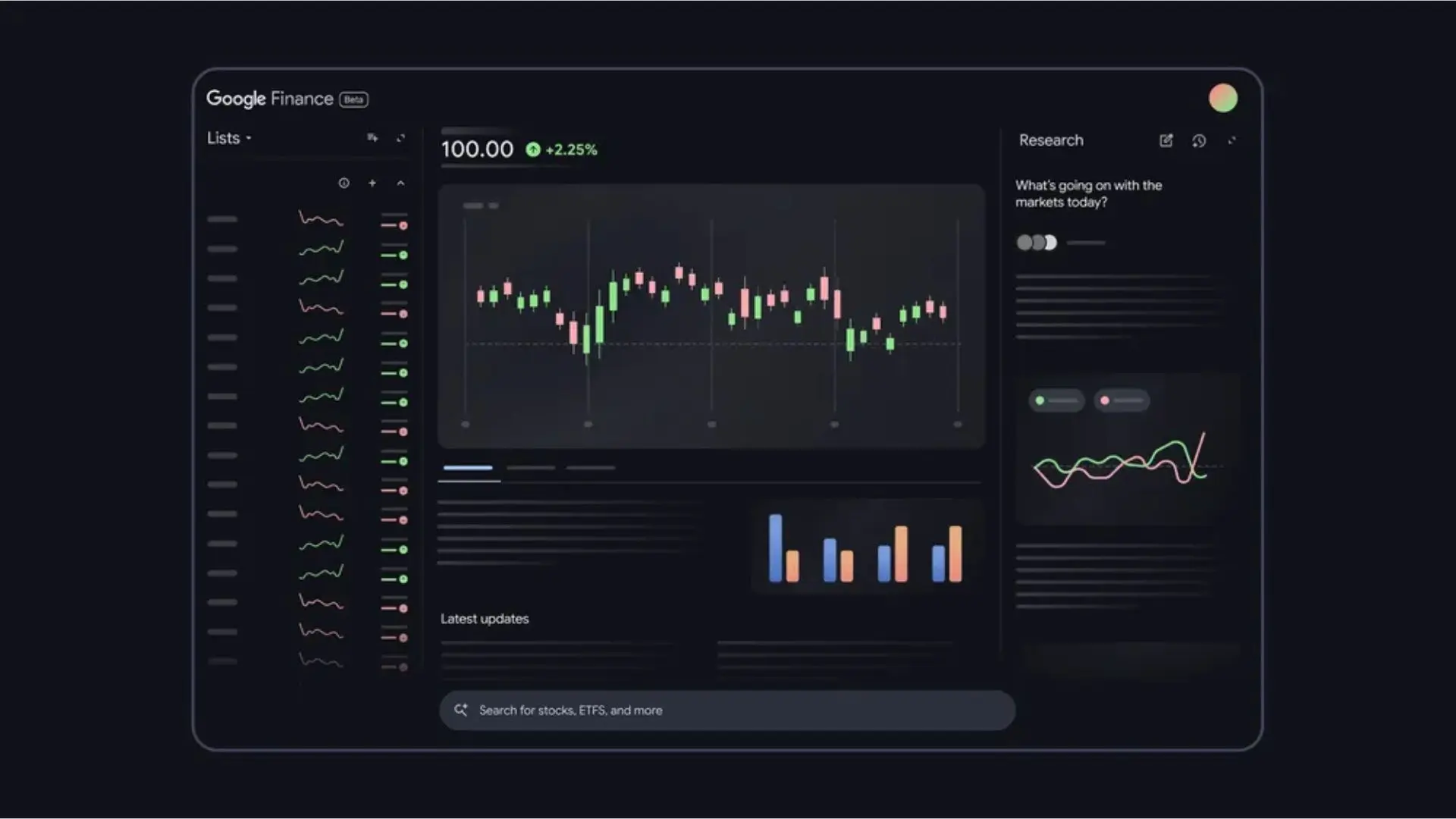 早在 2020 年,Google便对桌面端和移动端的 Google Finance 做过一次大改版,优化了股票数据的查找与跟踪体验。 2024 年,Google又为搜索中的 AI 模式加入了数据可视化和自定义图表能力,为金融类查询打下基础。
