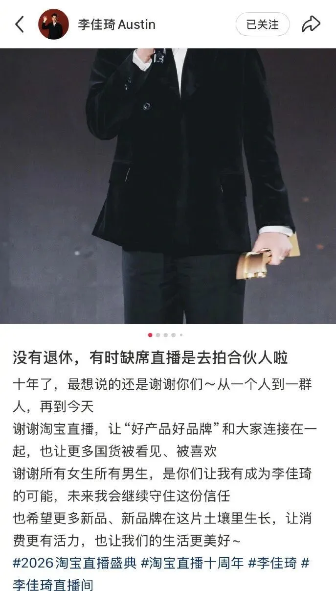 这一表态当晚即引发行业关注,随后李佳琦在深夜通过个人社交渠道补充说明,强调并未退出直播行业,只是阶段性调整工作重心,未来仍将持续推动国货品牌与消费场景的结合。
