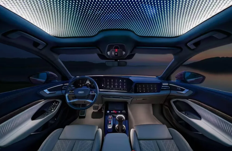 座舱内,新车配备由11.9英寸领航视界、14.5英寸全景中控屏和10.9英寸副驾娱乐屏组成的奥迪MMI全景显示屏。