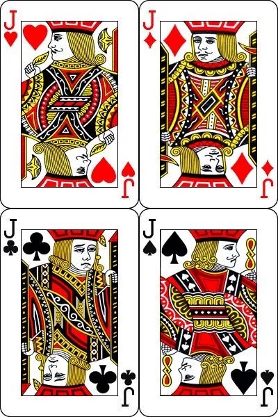 其实,扑克牌J、Q、K的每个花色基本都代表历史上或者神话中一个有名的人物,以及这些人物的一些主要特征。