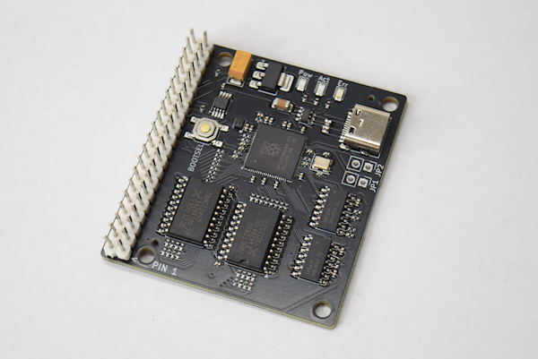 ATAboy电路板上用的是树莓派RP2350 SoC片上系统,也就是树莓派Pico 2/2W同款芯片(250MHz Arm双核心),通过GPIO实现IDE、USB之间的转接。