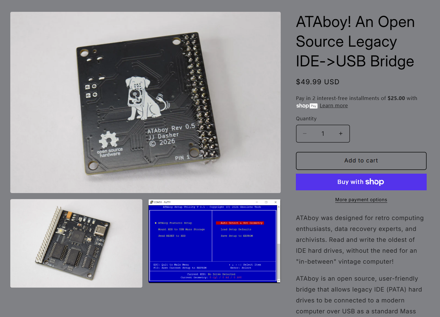 来自JJ's Messy Bench的JJ Dasher特意打造了“ATAboy”,一款专门面向IDE老硬盘、可转成USB接口的开源转接器。