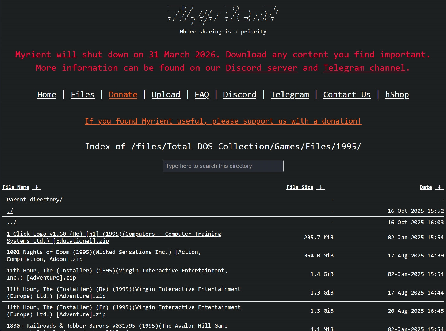 另外,Myrient预计本月底下线,目前仍能正常访问,即便是下线之后,Discord服务器和Telegram频道也会继续开放,供玩家交流。