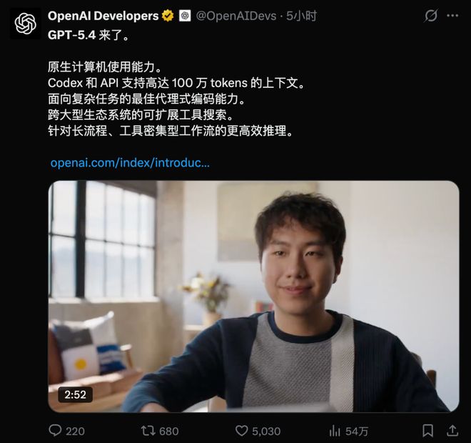 但从GPT-5.4开始,话题变了——AI能做什么、能完成什么、能替代什么。