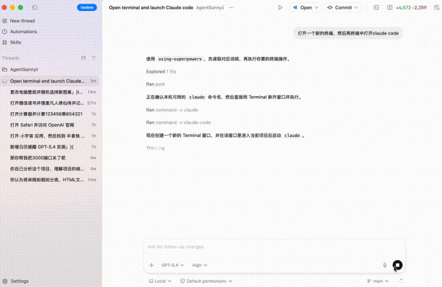 甚至,你可以要求GPT-5.4操作终端来打开claude code。