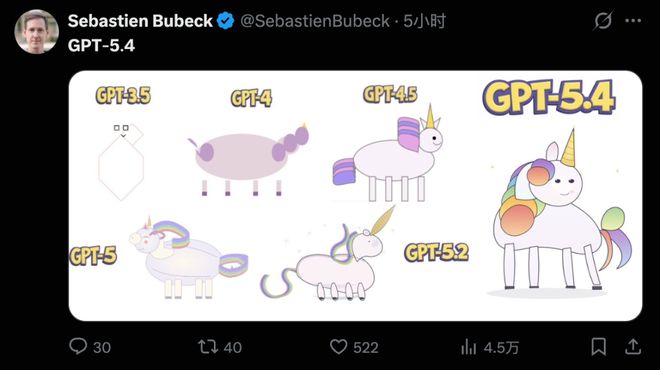 OpenAI的杰出科学家Sebastien Bubeck用一幅梗图来形容GPT-5.4编程能力提升。