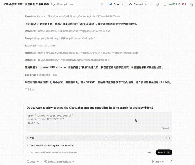 你还可以用GPT-5.4来操作电脑打开APP,比如要求打开小宇宙 APP。