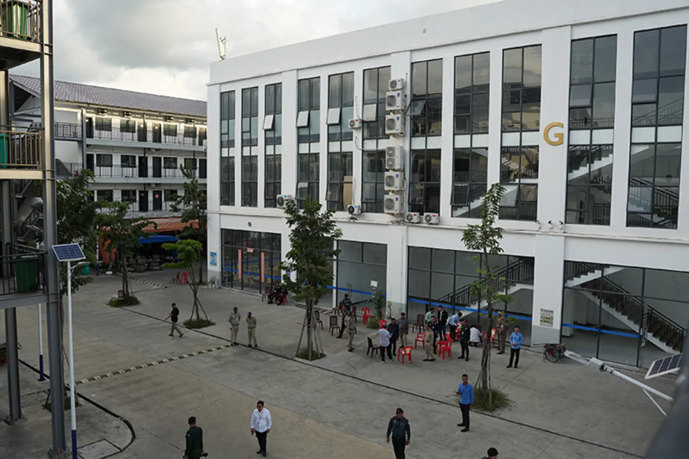 靠岸后,另一辆车已在等候。夜色中,车辆穿过一片灯火密集区域,高墙、铁门、监控摄像头接连出现,入口处站着持枪保安。这里就是诈骗园区。