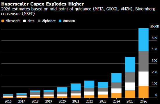 由于预期未来几年AI服务将出现爆发式增长,Meta及其部分大型科技同行预计将在2026年投入约6500亿美元,用于建设数据中心并采购其他基础设施。