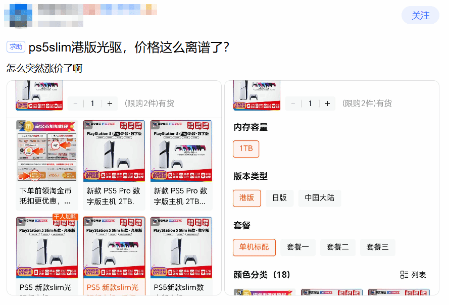 2026年3月25日消息,有玩家发现,原本价格稳定的 PS5 基础款竟悄然开启了涨价模式。目前PS5 Slim国行光驱版在主流电商平台的售价维持在3600元左右,价格已经不算低。然而,近日有玩家晒出的一张店铺截图却引发了轩然大波:图中显示的港版光驱版PS5价格竟高达4300元。