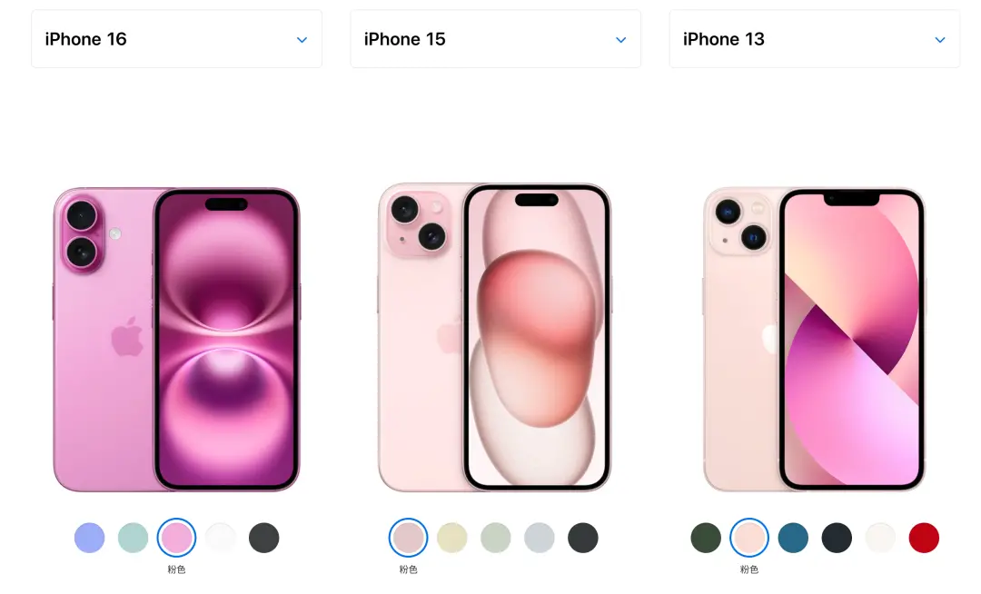 iPhone 13的粉又淡得偏向肉色。