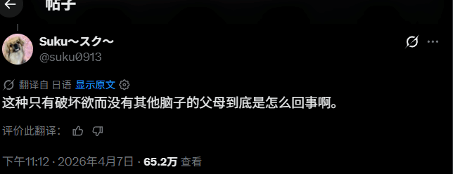 近日,一名日本初三男生因“偷偷藏起来的Switch被父母发现并直接砸毁”一事,在社交平台引发热议,不少网友直指其父母为“毒亲”(对子女造成身心伤害的父母)。这名学生在4月6日还曾发帖表示“升入初三第一天,要去上学了”。但仅过一天(4月7日),他便更新称:“终于被父母发现了,谢谢你一直以来的陪伴,Switch……以后再也玩不了游戏了。”
