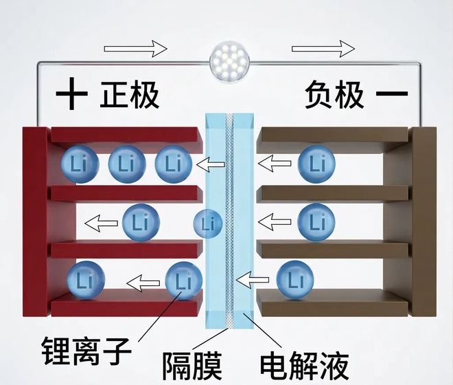 这里跟大伙儿简单科普一下,咱们平常使用的锂离子电池,它的充放电是靠锂离子穿过隔膜在正负极之间来回往返来实现的。