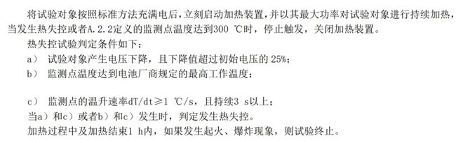 于是咱们就能看到,这次新国标专门为户外移动电源这类设备设计了热失控测试。它的要求就更是严苛到离谱 —— 不仅要拿加热装置给电芯加热到 300 度的高温,还要求电池在加热过程中和结束后的 1 小时内不能起火、更不能爆炸。