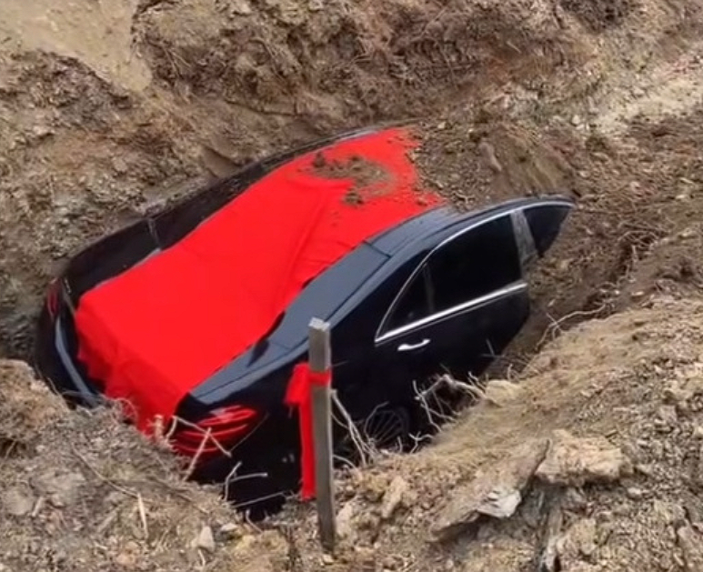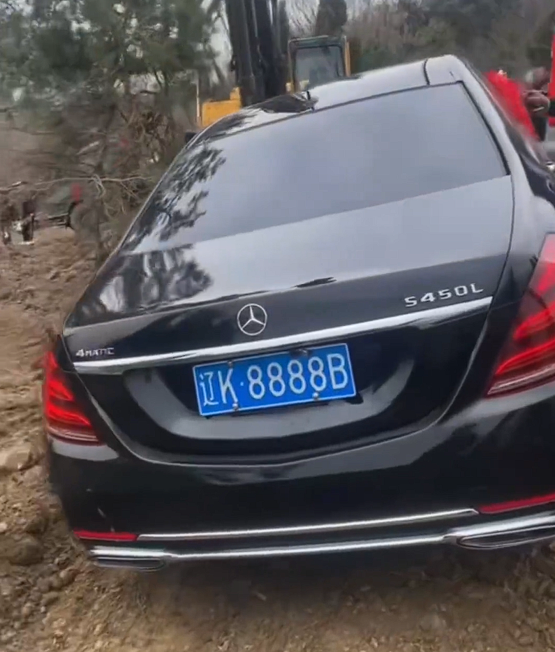 本月9日,辽宁辽阳市弓长岭区汤河镇瓦子沟村一处墓地,一辆奔驰S级轿车被当陪葬品埋进墓地。据悉,涉事车辆为黑色奔驰S450L,车牌号“辽K8888B”(连号“8888”),市场价值约150万元,车辆顶部覆盖红布,由挖掘机吊入墓坑掩埋。