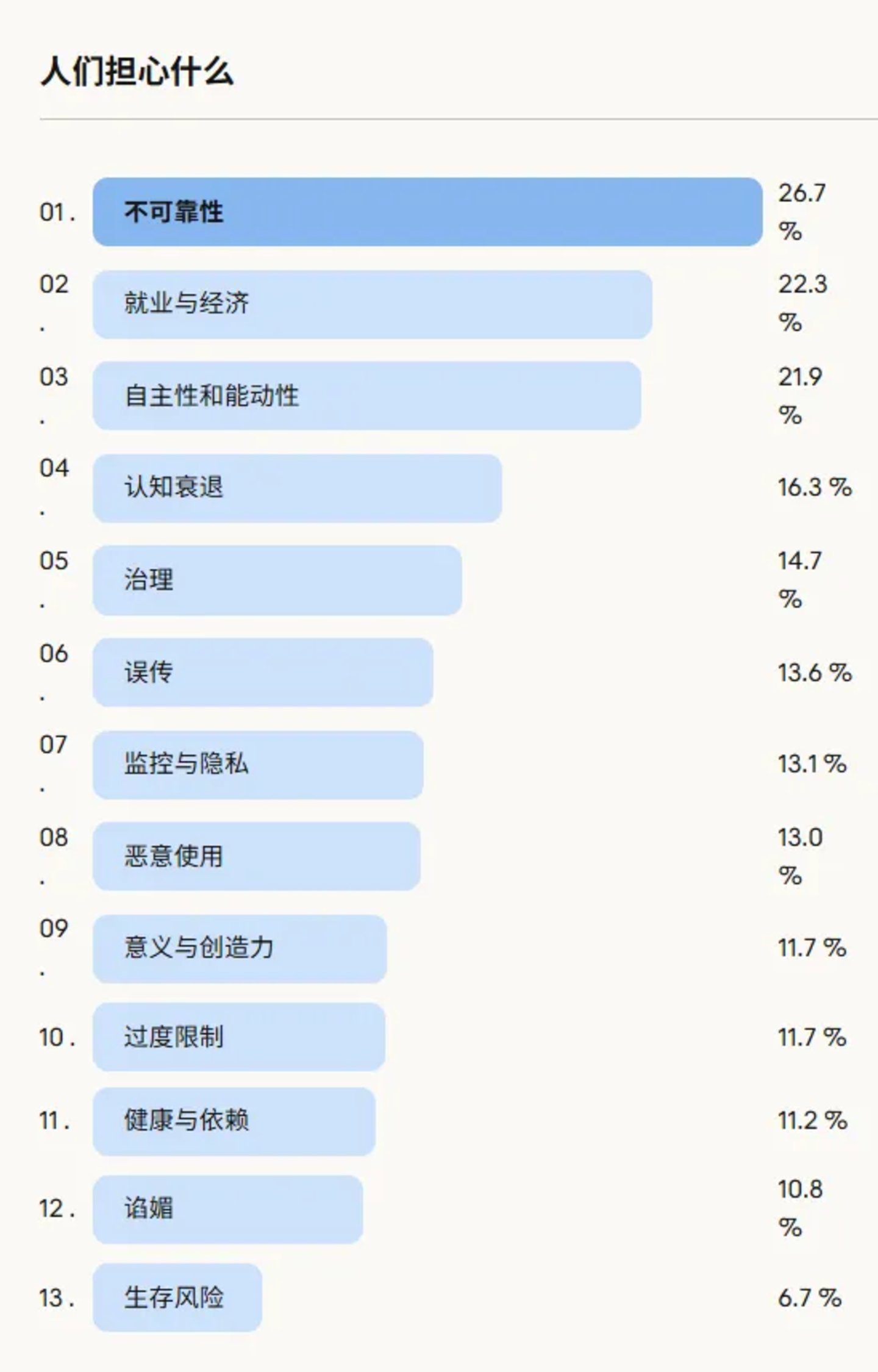 - 17%的人担心过度依赖导致"不会思考"