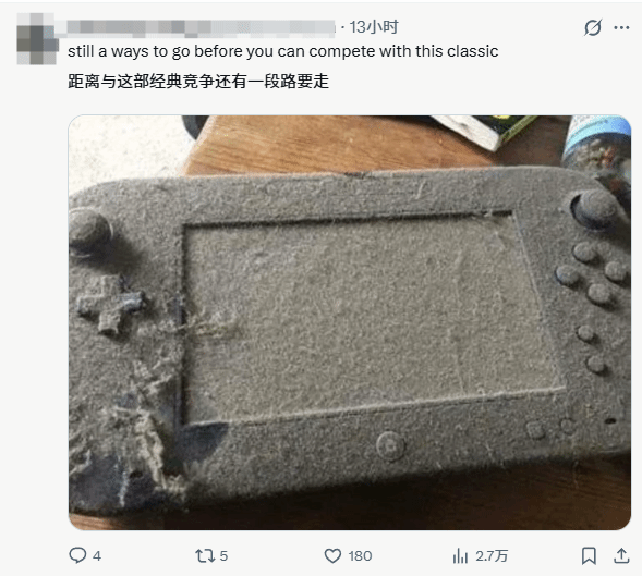 在原版 “长毛手柄” 爆火后,网友们晒出自己长期闲置的游戏设备,有网友晒出同样积满灰尘的 游戏主机,机身覆盖厚灰,还有玩家利用AI帮推主把灰尘清理掉,AI最有用的一集。