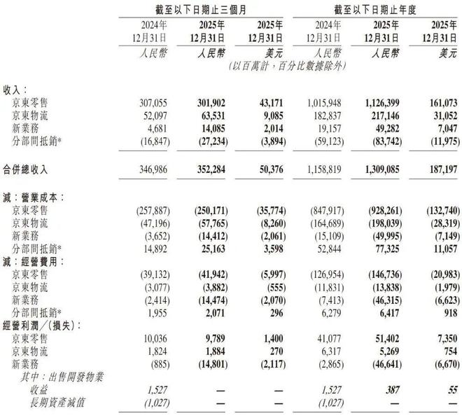 实际上,京东的财报已透露出一些信号。2025年,京东集团总营收突破1.3万亿元,核心零售业务保持稳健但增速放缓,新业务成为拉动增长的关键,而全球化业务被管理层定义为“未来长期核心战略”。其中,新业务(含京东外卖、京喜及海外业务)收入同比增长157.3%至493亿元,但由于战略性投入,该板块经营亏损达466亿元。