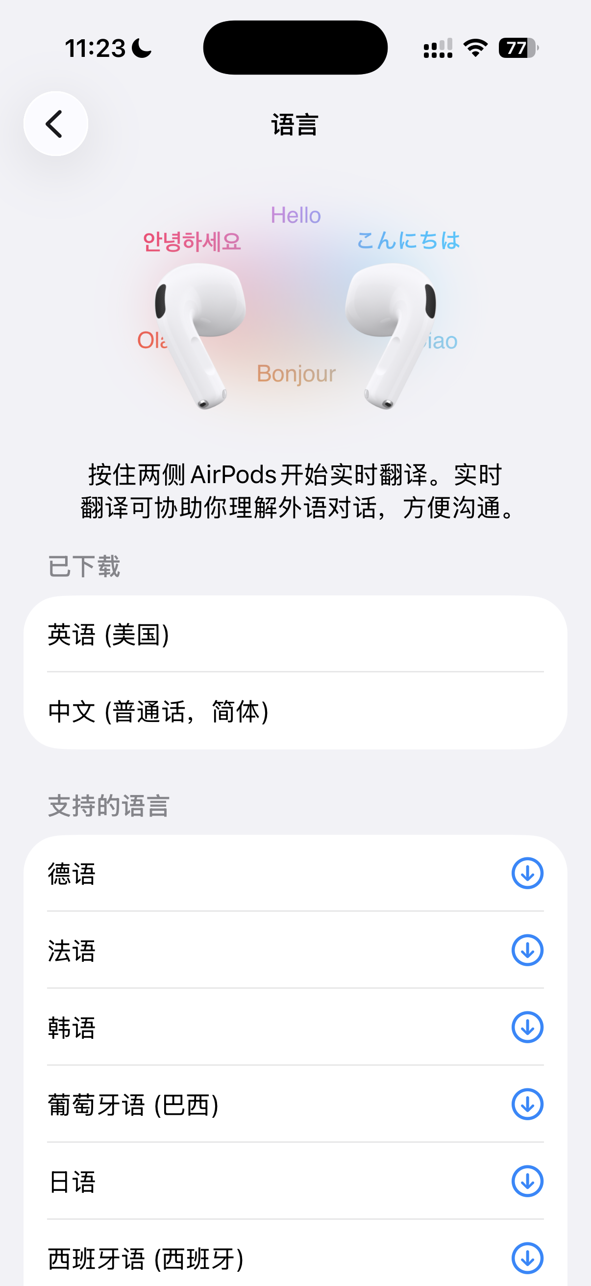 快科技进一步实测还发现,在开启苹果智能后,AirPods将支持实时翻译功能,用户只需按住耳机两侧即可快速启用。