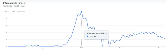 通过Google Trend搜索SBTI词条可以看到,传播从4月9日的晚上九点二十开始,到了4月10日的零点,搜索热度达到了峰值,前前后后不过才花了两个小时四十分钟。