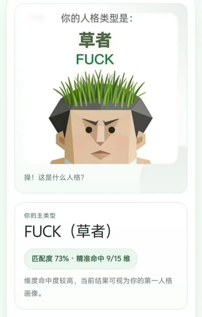 草者FUCK:表面咋咋呼呼一惊一乍,实则内心清醒,不爱多管闲事。