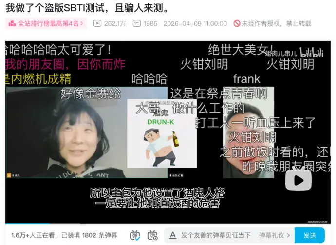 这款测试由B站UP主 @蛆肉儿串儿 创作,最初只是为了劝朋友戒酒做的恶作剧,却在一夜之间攻陷了微信、微博、小红书。