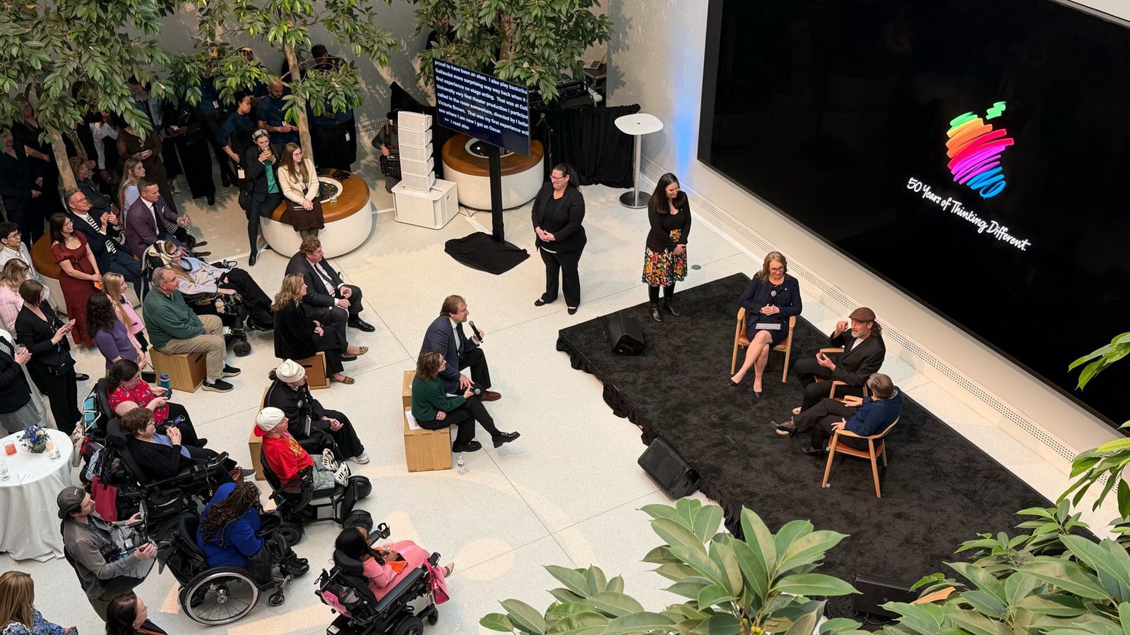 苹果公司近日进入全球 50 周年纪念活动的最后阶段,庆祝行程遍及华盛顿特区、墨西哥城、上海、东京等多座城市。 3 月 24 日,奥斯卡获奖聋人男演员特洛伊·科策(Troy Kotsur)与盖洛德大学校长罗伯塔·科达诺(Roberta Cordano),在华盛顿特区的Apple Card内基图书馆零售店,与苹果无障碍部门负责人 Sarah Herrlinger 同台对谈,围绕“无障碍科技如何激发创意”展开讨论。