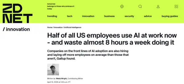 近日,盖洛普公司于本周发布的调查数据显示,目前半数美国员工在工作中至少“偶尔使用”人工智能技术。这一比例较上一季度的46%有所上升,成为该公司记录中工作场所人工智能使用率的最高值。