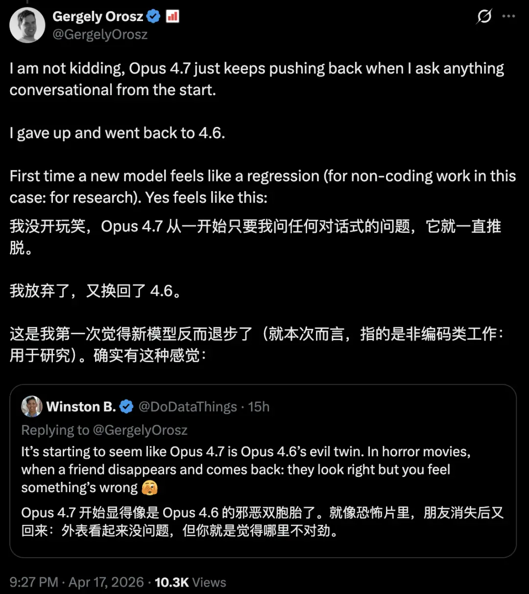 上线两天,Opus 4.7就把AI社区撕裂了。
