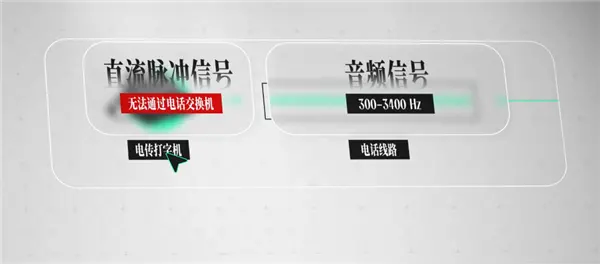 电话线是模拟语音系统,只能传 300–3400Hz 的音频信号,而电传打字机用的是直流脉冲信号,频率太低,信号会被电话交换机过滤或失真,根本无法传送文字。