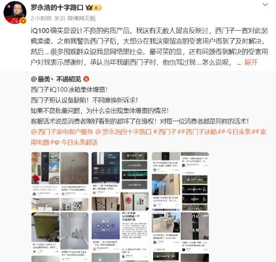 对此,罗永浩回应表示:“iQ100确实是设计不良的劣质产品,西门子一直对此装疯卖傻。之前我警告西门子后,大部分在我这里留言的受害用户得到了及时解决。然后很多围观群众说我是网络黑社会。”