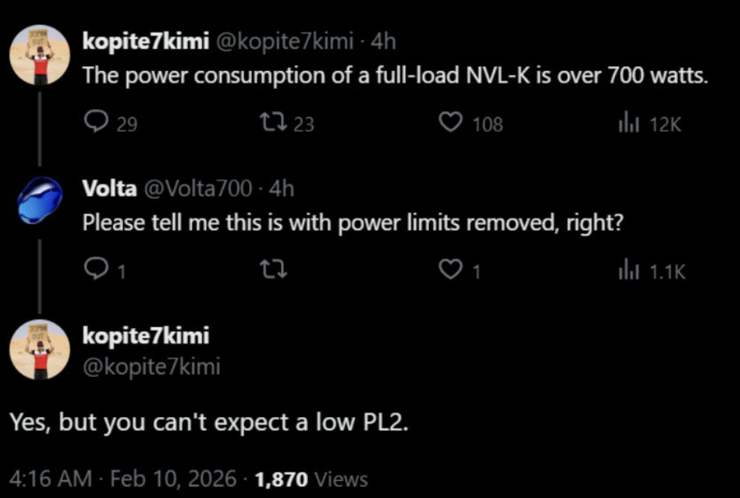 传说,Nova Lake的最高满载功耗将达到惊人的700W,指的自然就是这种52核心,普通型号没这么夸张。