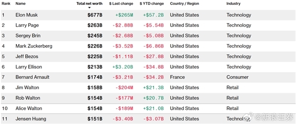 其中,财富缩水最严重的当属甲骨文董事长Larry Ellison,他今年的财富已经下降348亿美元至2130亿美元,距离巅峰时期更是下降超过45%。