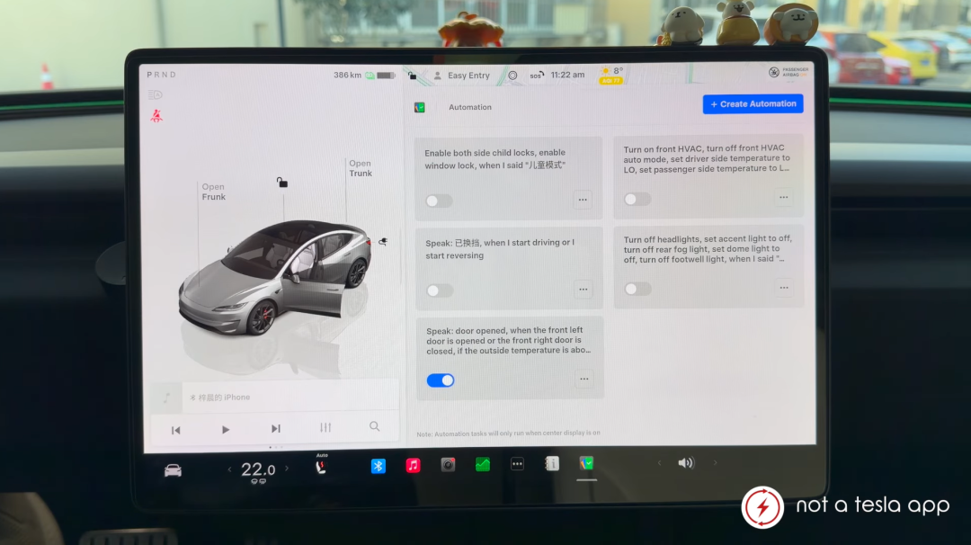 特斯拉在近期更新的2025.45.32.1版本中,推出了“自动化”功能。车主可以通过这个功能,提前对车辆进行自定义。