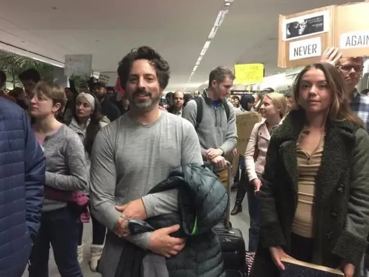 2017 年,身为前苏联难民,同时也是Google联合创始人的谢尔盖·布林曾冲到旧金山机场抗议特朗普的移民禁令,他和数千位抗议者站在一起,表示自己就是难民。