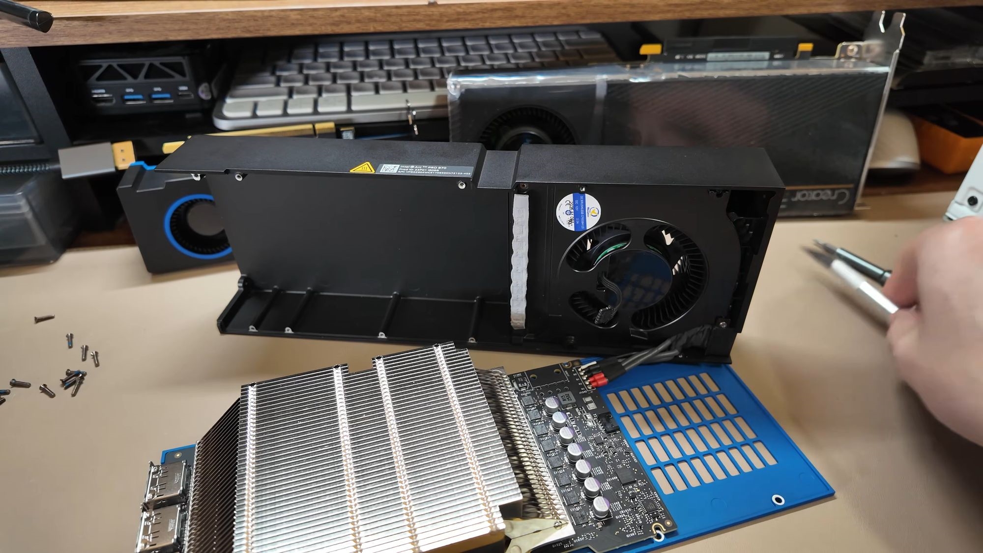 Intel新一代专业显卡锐炫Pro B70/B65已经发布,实测性能不俗,而它们所用的Battlemage BMG-G31 GPU,原本也会用于第二代高端游戏卡锐炫B770。可惜,没了。Tech Guy Beau拆解了一块锐炫Pro B70,测量发现BMG-G31 GPU尺寸约为25x15毫米,也就是面积375平方毫米。