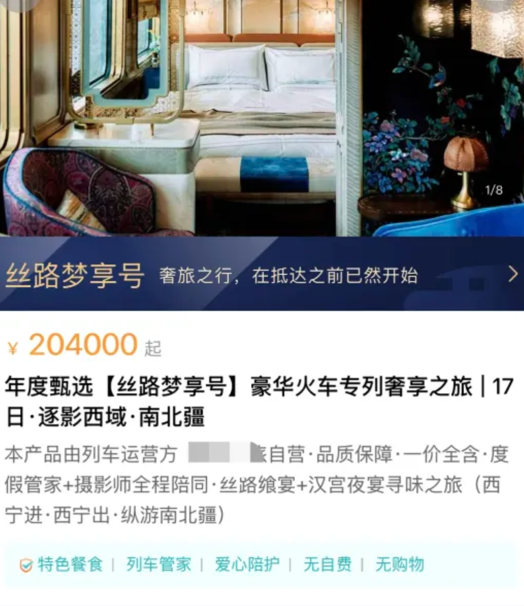 这款高价专列并非普通客运列车,而是由入驻12306平台的旅游公司运营的高端定制旅游产品。