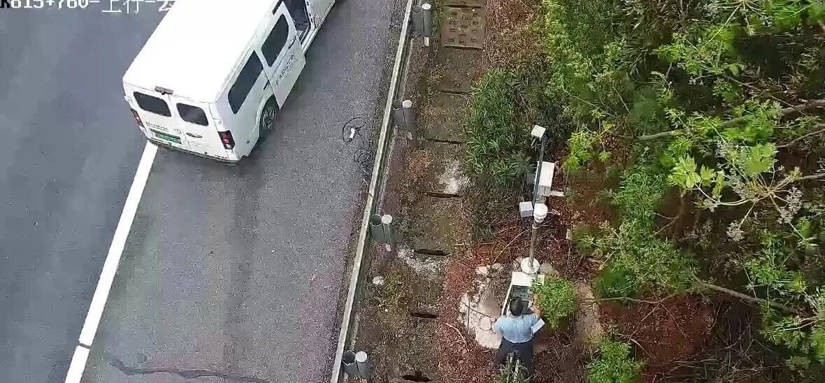 他在未采取任何安全防护措施的情况下,竟直接将车停在应急车道上,并撬开路边监控设备箱试图用其中的电源给车辆充电。