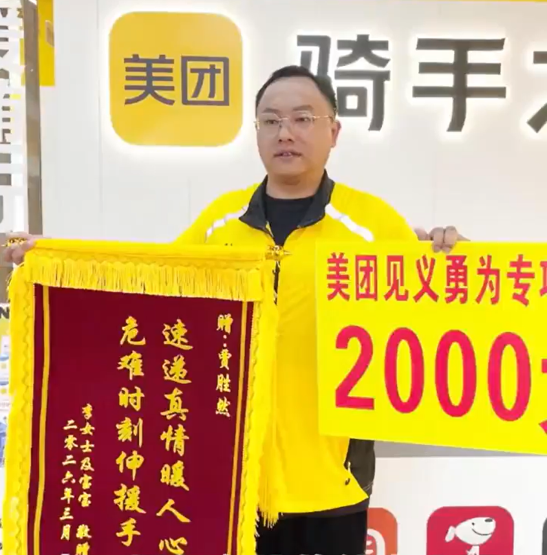 美团平台在得知其感人事迹后,第一时间为贾胜然申请了先锋骑手的荣誉称号,并颁发了荣誉证书以及2000元的专项奖励金。