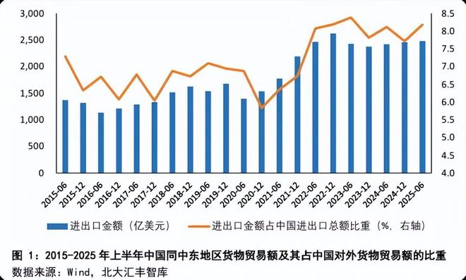 沙特之外,中国与其他中东国家的合作也不断深化。据统计,到2024年,中国与中东双边贸易额已达4872亿美元,中国主要向中东出口机电、纺织服装、新能源车、石油设备等产品,同时从中东进口油气与矿产品。