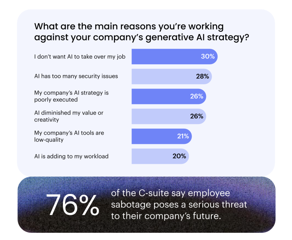 员工对抗AI最重要的原因是:不想让AI替代自己的工作|图源:WRITER