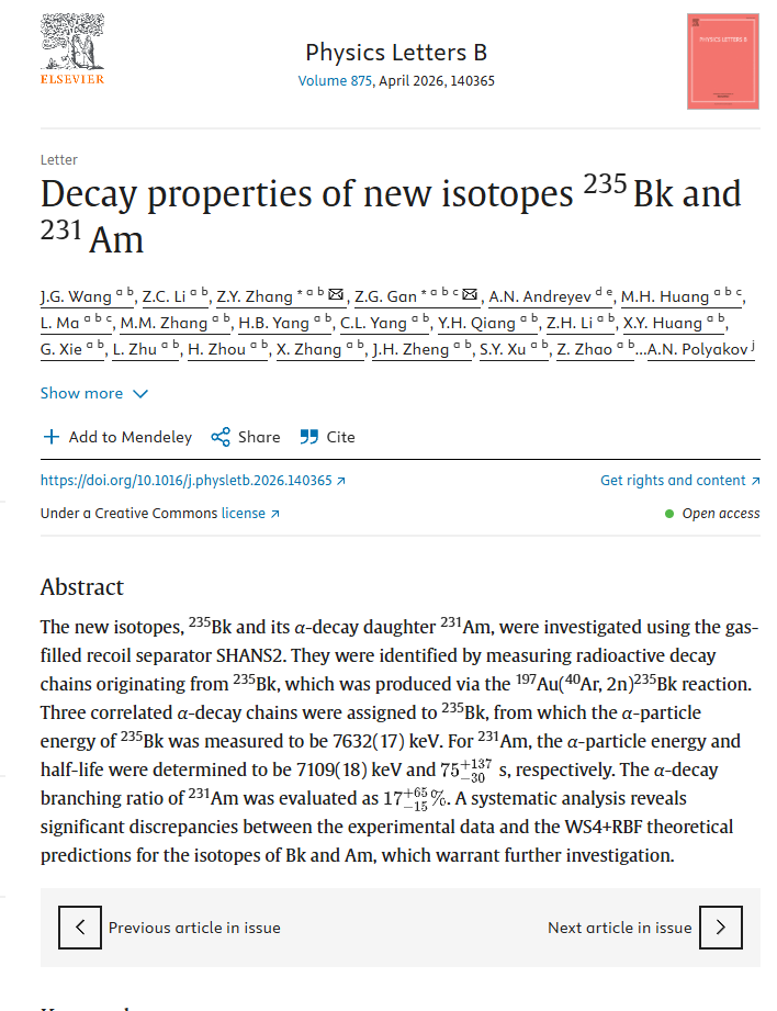 这些研究结果进一步拓展了缺中子锫和镅同位素的阿尔法衰变系统性。