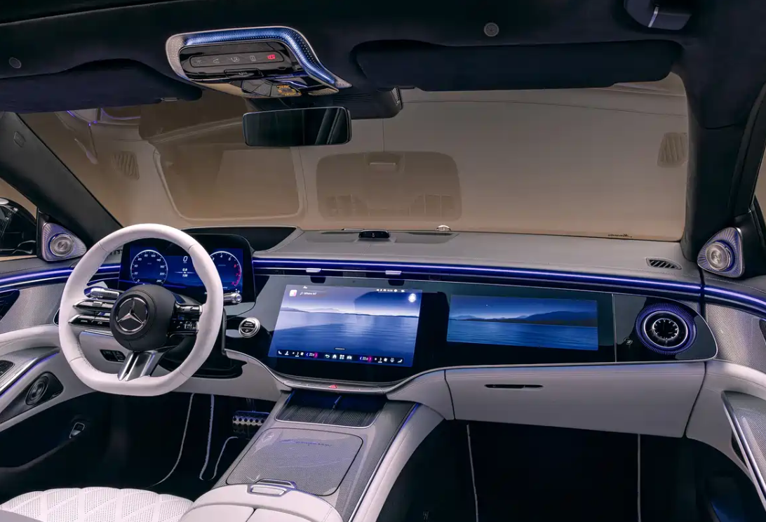 内饰以多屏组合打造智能豪华座舱,配备14.4英寸中控屏、12.3英寸仪表屏与12.3英寸副驾屏,搭载最新MBUX系统。