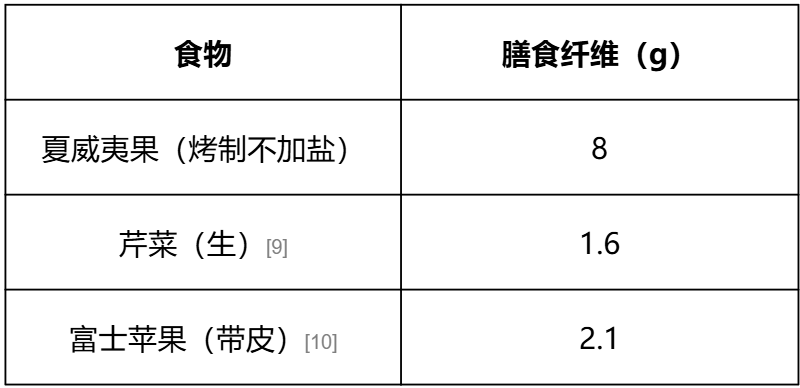 很多人提到膳食纤维,往往首先想到蔬菜、水果或粗粮,而坚果类食物通常不会被认为是纤维来源。但从食物成分数据来看,夏威夷果的膳食纤维含量并不低,明显高于日常印象中的“高纤维蔬果”。