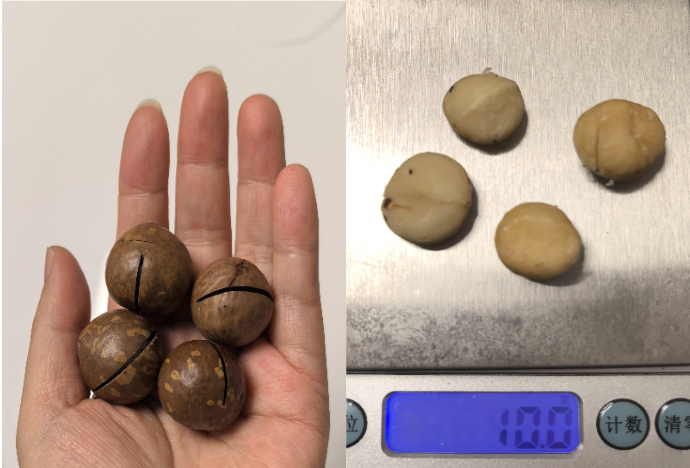 《中国居民膳食指南(2022)》建议,坚果平均每天摄入 10g 左右[7]。如果换算成夏威夷果,大约相当于 4 颗左右。
