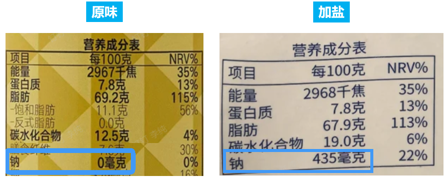 原味和调味产品的钠含量差异大(图源:自己拍的)