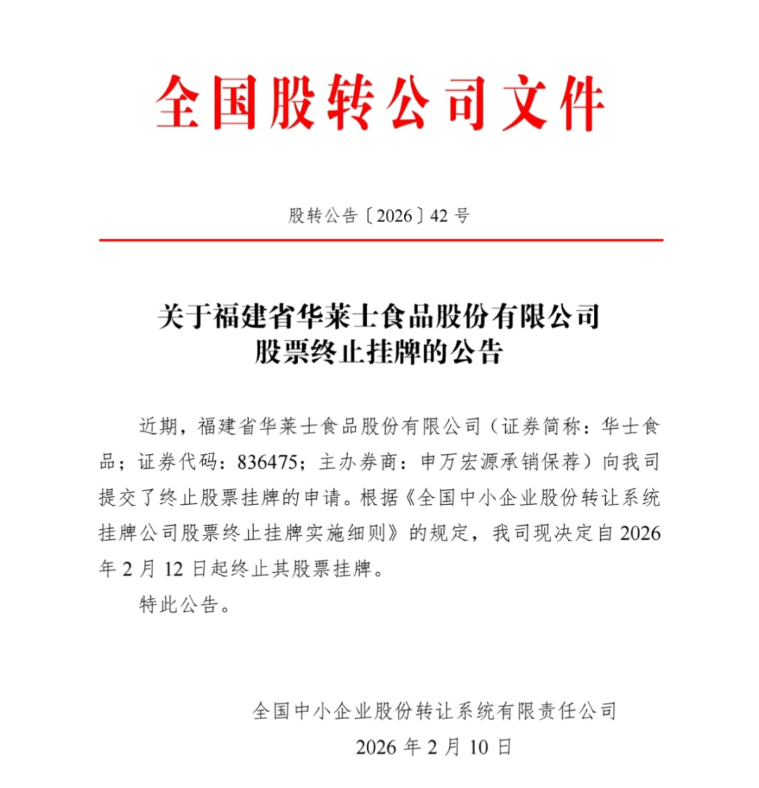 就在年前,华莱士的母公司华士食品居然悄没声息地宣布:要从新三板退市了!