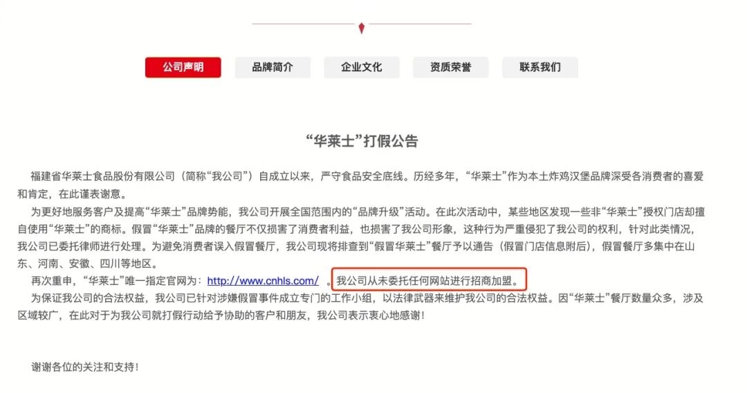 如果你在百度搜索华莱士加盟,前面几个链接基本上都是假的,因为华莱士早就对外宣称不开放外部加盟。