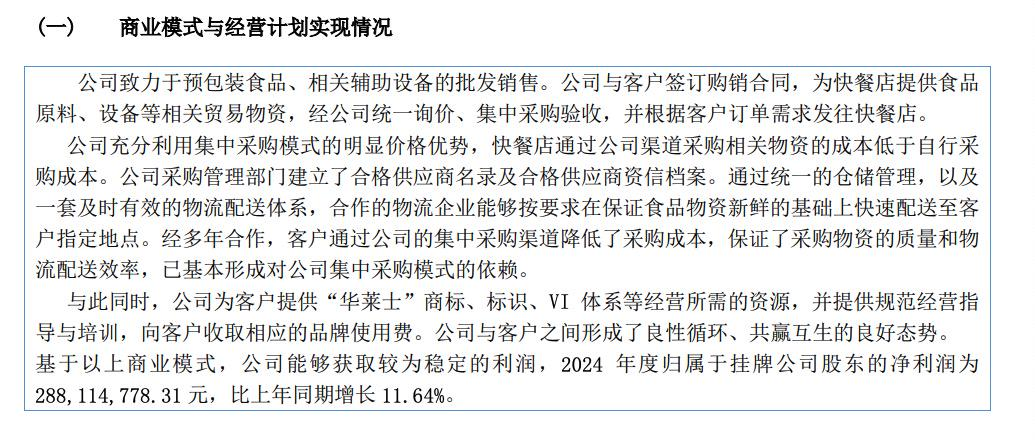 而且按挂牌公司的口径去看,华士食品把自己归类在“批发业”。它不只是卖汉堡,更大的生意其实在后端:原材料、配料、包装、设备、统一采购、品牌输出。